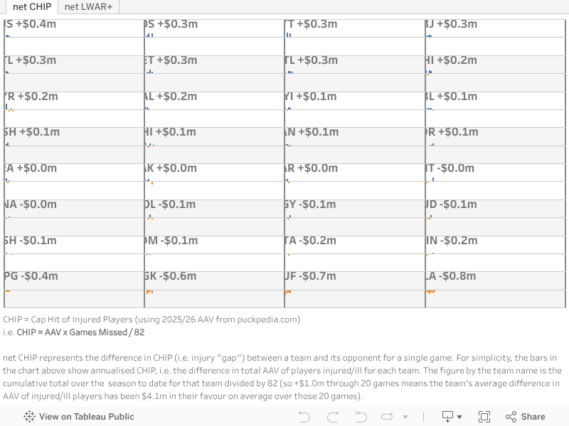 - Injury absence data I have used comes from puckpedia.com, cbssports.com
