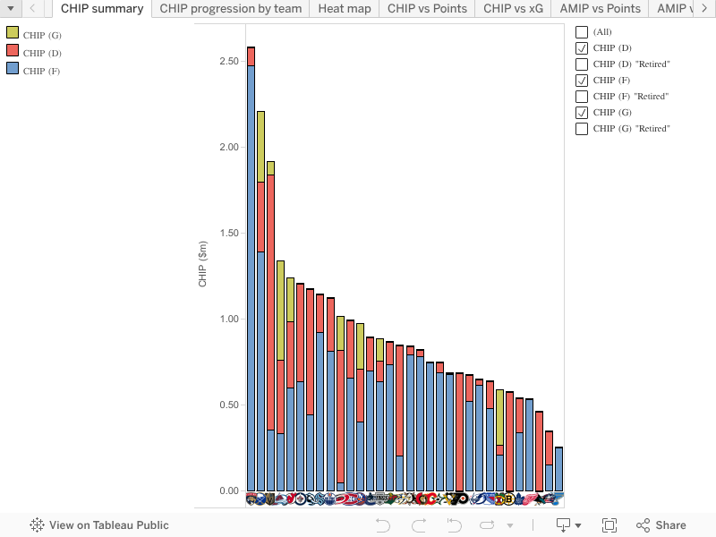 - Cap Hit of Injured Players (CHIP) represents the per-game cap charge of a player missing a game through injury/illness, i.e. annual cap charge divided by 82 (data from puckpedia.com)